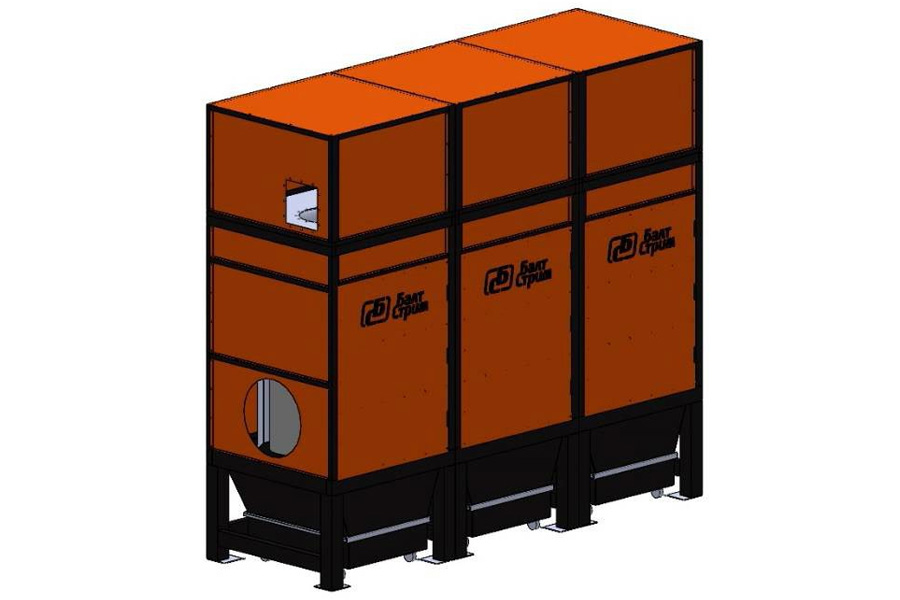 Ресивер заперт электромеханическим соленоидным клапаном, который при открытии создают резкий воздушный импульс, встряхивающий оболочки фильтров. Твердые частицы, отделившиеся от фильтров в процессе очистки, оседают в бункере для сбора пыли. Извлечение бункера осуществляется оператором после остановки ФВУ. Управление соленоидными клапанами может осуществляться как в ручном, так и в автоматическом режиме. Корпус вентиляционного агрегата выполнен из листовой стали и покрашен порошковой краской.